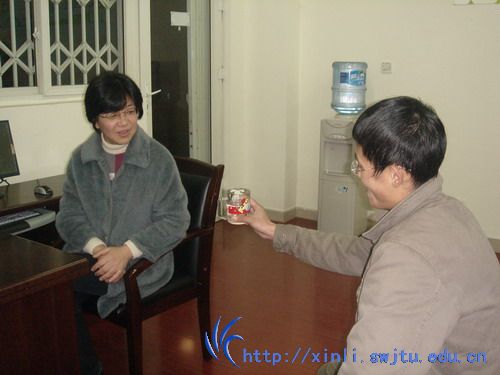 对于焦虑的调节,马老师指出,首先是要给自己一个合理的目标,不要好高骛远,非得“当第一”,一定要“拿一等奖学金”,也不能妄自菲薄,“60分万岁”。同时要明白,有时努力了,也不一定就能取得成功的结果,但更重要的是努力的过程。其次,要学会调节自我,谈到此时,马老师让我拿起了桌上有半杯水的杯子,“你尝试这样端1分钟,有问题吗?”“没有”。“那10分钟呢?”“也可以”。“若是一天呢?”“肯定不行”。“如果同样让你端一天,但你可以每端1分钟,放下休息一会,这样还有问题吗?这就如同我们对待压力,学会偶尔把它放下,放松调节自己。这样才能更长久的承受压力,才能承受更重的压力。”接着,马老师又谈了调节情绪的具体方式:可以采取转移注意力的方式来减轻焦虑,如运动、听音乐、写日记等。若实在控制不了自己的情绪,干脆不管,空出一段时间(一个晚上、一天)来思考到底自己焦虑的是什么。同时要对自己宽容一点,接纳自己可以有不好的情绪。