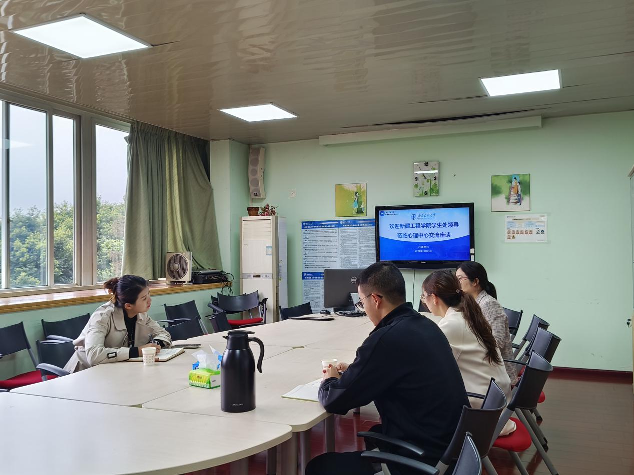 王振文老师首先表达问候和此次交流的主要目的。王老师简要说明了新建工程学院心理教学工作概况,希望与中心分享心理健康教育和学生管理的经验。