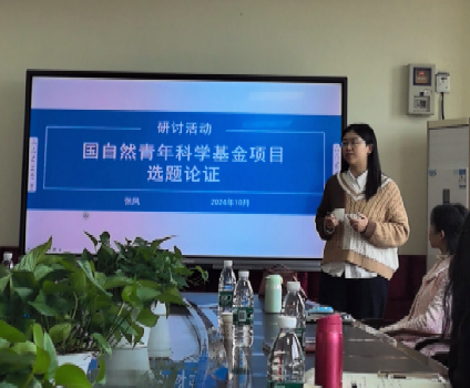 接着,张凤老师汇报了拟申报的选题。张老师从选题背景和意义,文献综述,以及重点介绍了研究内容,并分享申报撰写的一些经验和疑问,并与参会的老师进行了热烈交流讨论,帮助张老师进一步完善申报选题和科学问题的凝练。