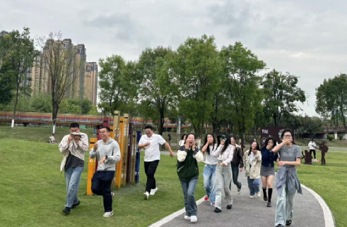 活动以草坪上的"声音冥想"拉开序幕。参与者闭目聆听风铃、颂钵与吉他即兴演奏的自然协奏曲,通过呼吸调节与声音引导逐步放松身心。随后的破冰环节中,"桃花朵朵开"和"大风吹"游戏迅速打破专业壁垒,心理学学生运用非言语沟通技巧引导马克思主义学院同学融入集体,笑声与奔跑的身影让春日的草坪焕发生机。