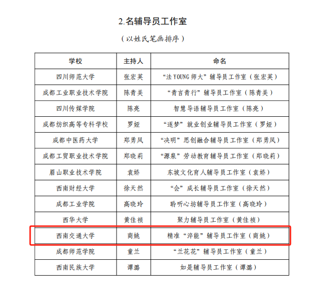 近日,中共四川省委教育工作委员会、四川省教育厅公布(2021—2025年第2批)高校思想政治教育名师工作室名单。学校马克思主义学院副院长李学勇教授主持的“李学勇名师工作室”入选名思政课教师工作室,土木工程学院辅导员商姚主持的“精准‘淬能’辅导员工作室”入选名辅导员工作室,捷克论坛