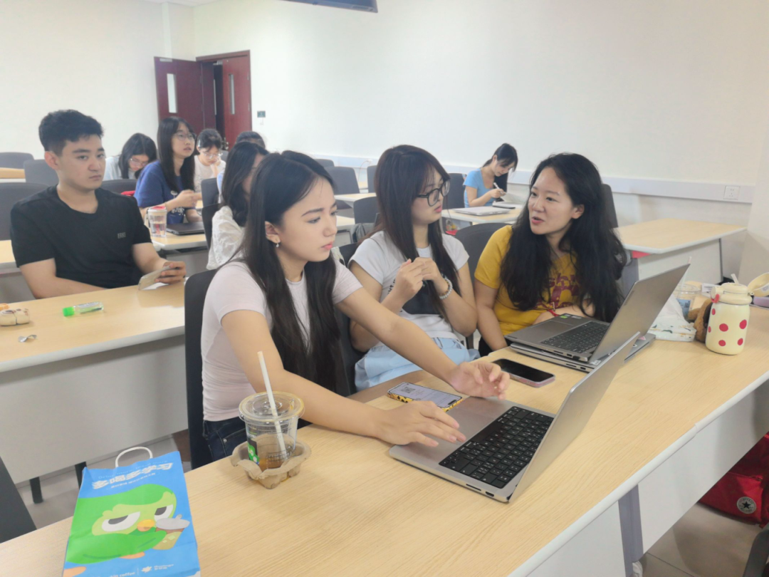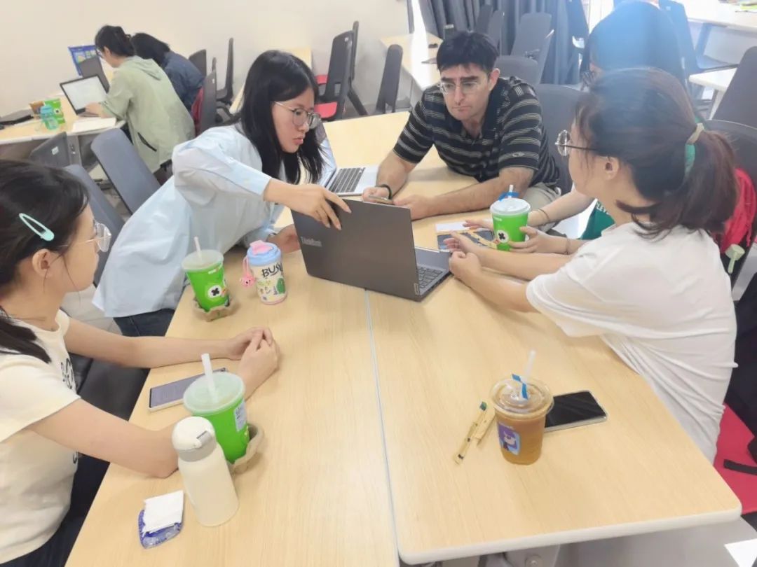 7 月 10 日下午最后一场的"Publishing in Top-Tier Journals (PNAS)"课程堪称"压轴大戏"。Dr. English系统讲解了manuscript提交的完整流程,包括选刊策略、同行评议应对技巧、以及如何处理拒稿和修改意见。他还分享了自己在PNAS发表论文的宝贵经验,为学员们揭示了顶级期刊发表的"内在逻辑"和成功秘诀。同时,结课小组汇报在 X30555 教室紧张欢快的节奏中完成。各小组围绕跨文化心理学相关主题,结合课程所学的研究设计、数据分析及写作思路,系统呈现了各组研究计划的选题背景、研究框架、方法设计、时间规划、目标期刊等内容。Dr. English与中方教师对每组汇报逐一进行点评与指导,现场互动频繁,学术氛围浓厚。学生们表示,通过汇报实践,不仅深化了对课程内容的理解,更提升了团队协作与学术表达能力。