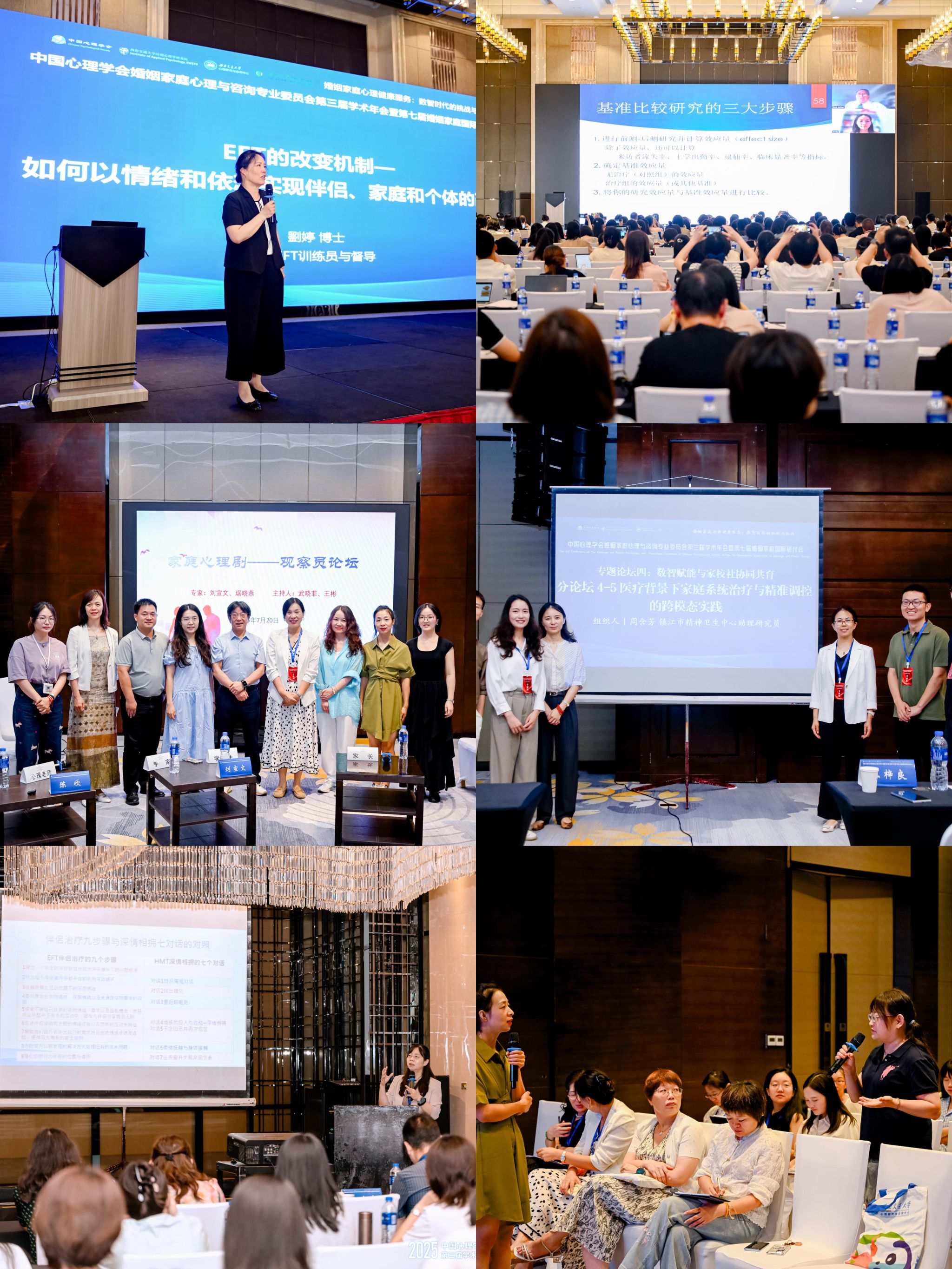 为期两天的会议内容丰富且形式多样。主旨报告环节,香港中文大学教授马丽庄、美国杨百翰大学教授 Richard Miller、美国普渡大学博士刘婷、华东师范大学教授周晓林等特邀嘉宾,分别围绕多家庭治疗法、实践导向研究、EFT 的改变机制以及 AI 相亲交友大模型等前沿话题,分享了各自的研究成果与实践经验,为参会者带来了一场场知识的盛宴。