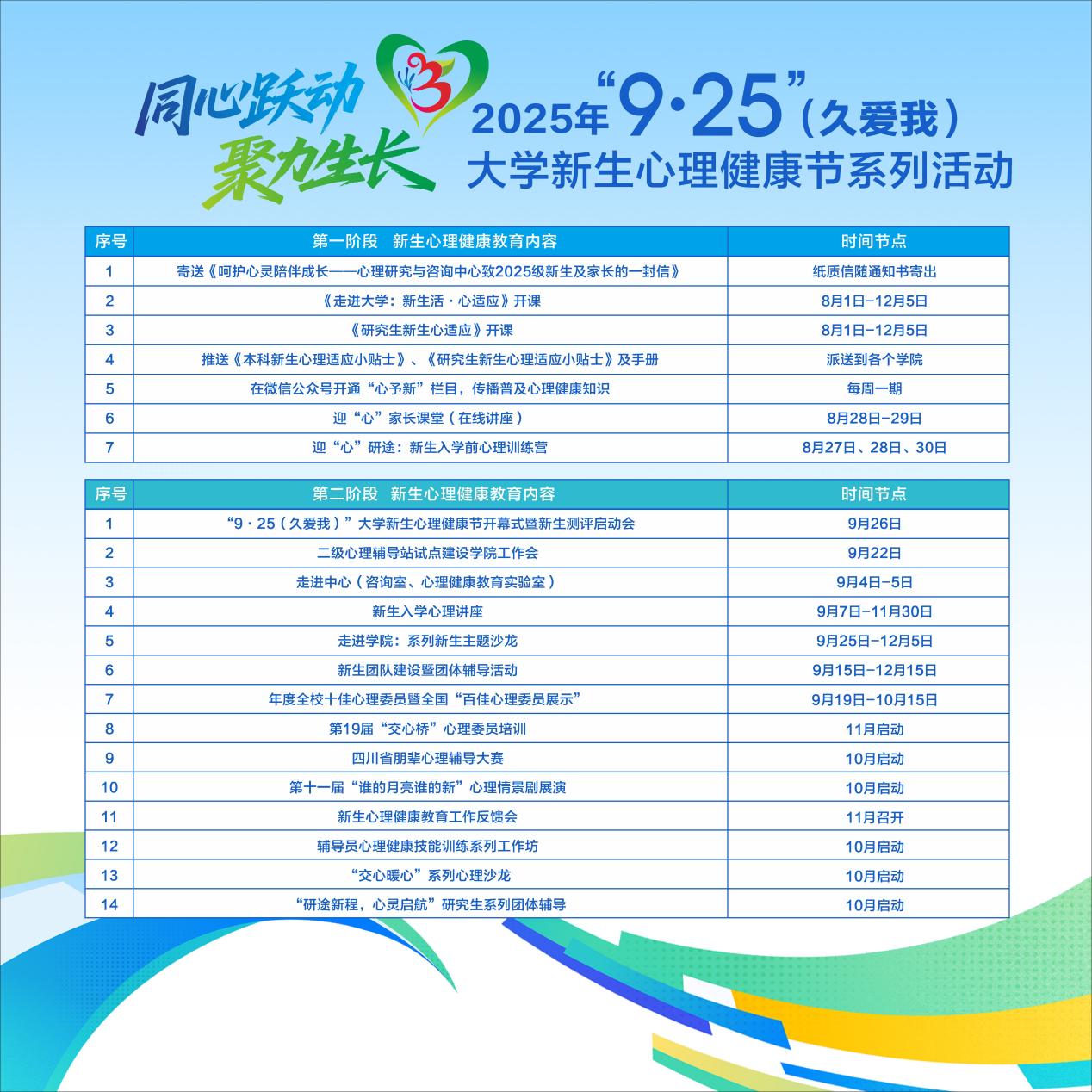 中心主任高雪梅介绍了今年“9·25”(久爱我)大学新生心理健康节的总体工作安排,从7月到12月持续开展两阶段共21项心理健康系列活动。智慧城市与交通学院2025级本科新生王晨喜、土木工程学院2025级研究生新生何鳅代表全校新生发言。