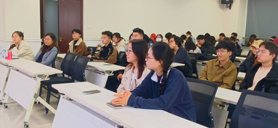 高级生涯导师樊菊老师主持,心理中心党委书记刘咏梅老师为周老师颁发校外生涯导师聘书,现场60余名同学积极参与。