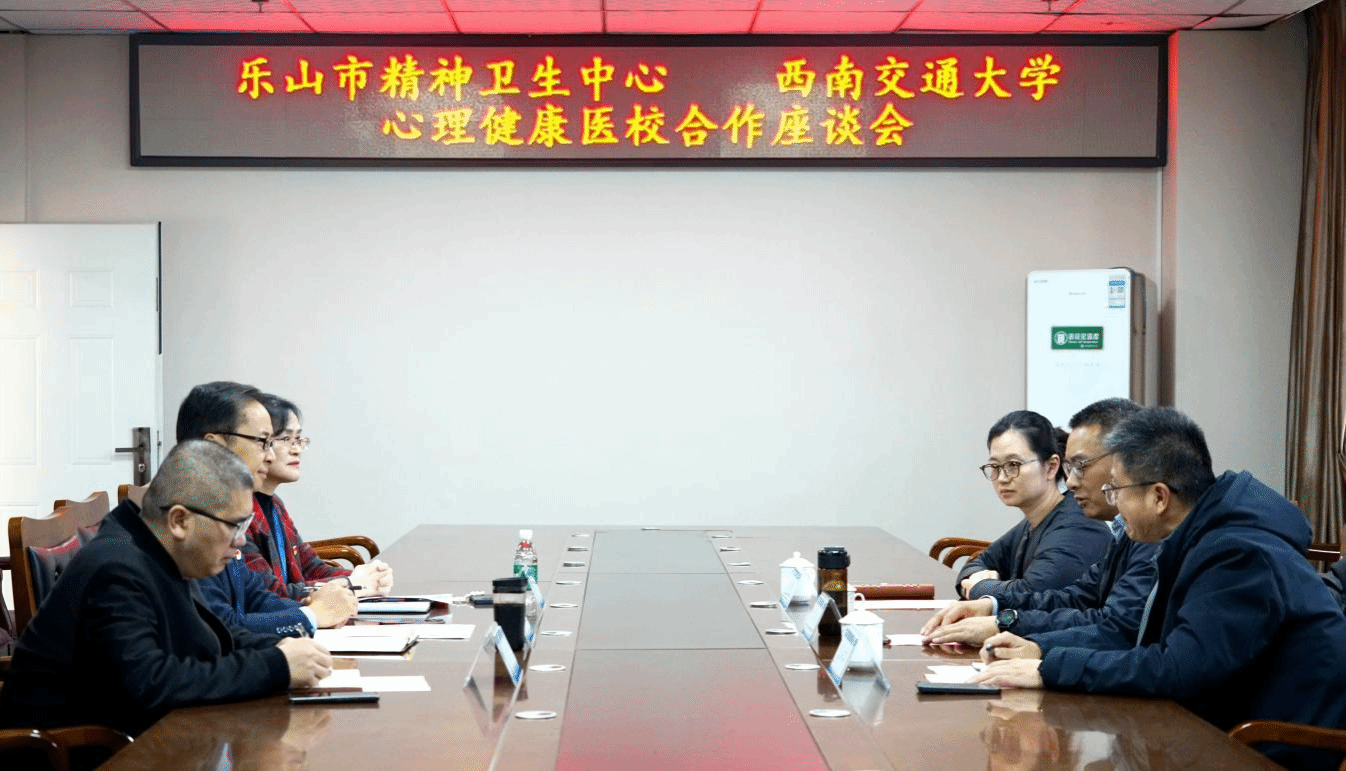 2025年11月13日,中心副主任雷鸣带领峨眉校区学生管理办公室主任陈洪章、中心心理健康教育教研室副主任冯缙一行到访乐山市精神卫生中心,就医校合作、学生诊疗服务等开展研讨。乐山市精神卫生中心党委书记白世昆及领导班子成员出席会议。