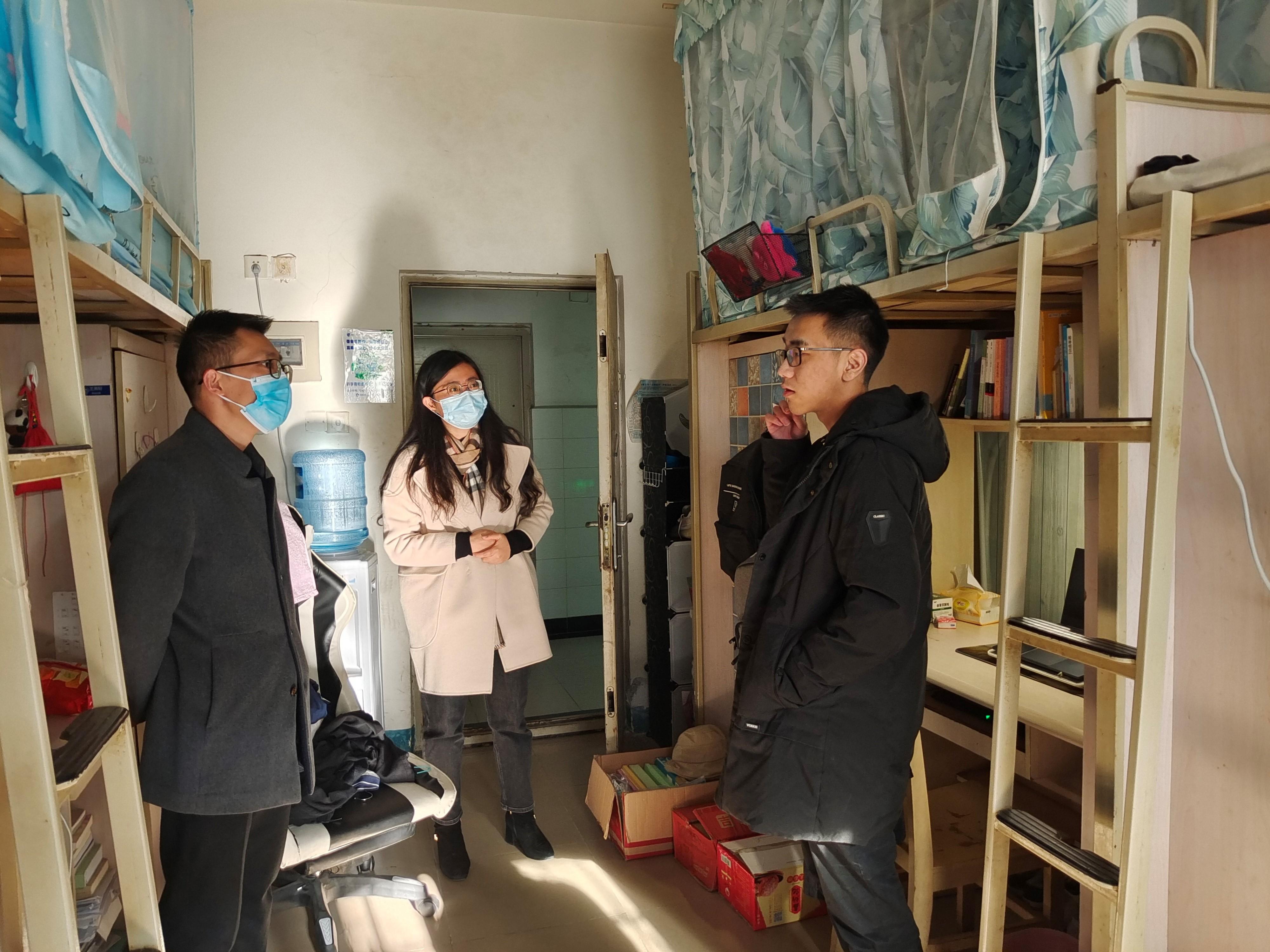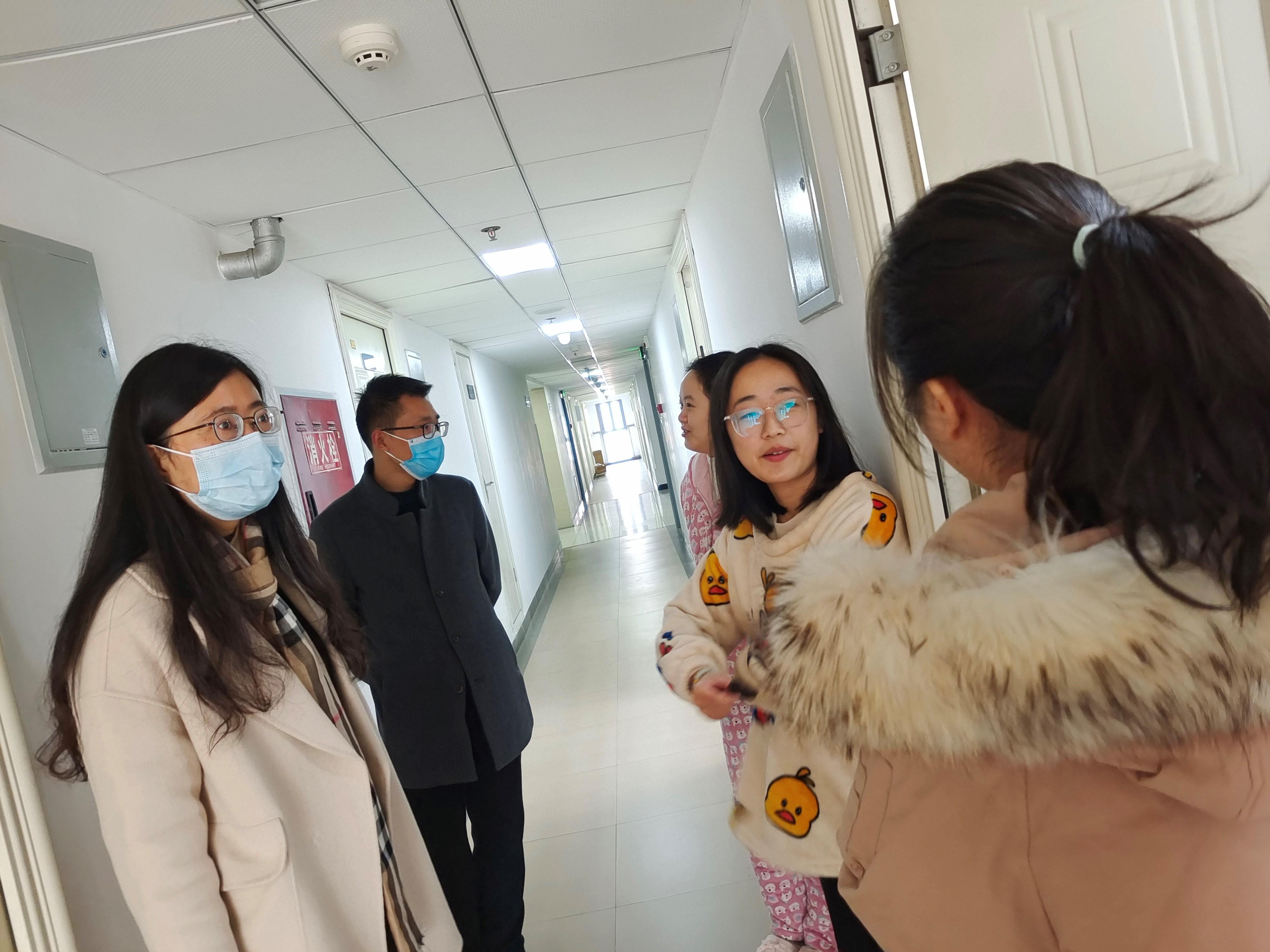 2021年11月12日下午,心理中心直属党支部书记刘咏梅、副书记柯小君、毕业班辅导员樊菊老师,走访了毕业生宿舍,与本、研毕业班的同学进行交流谈心,了解毕业班同学的就业、生活和学习状况,并给与一定的关怀和帮助。