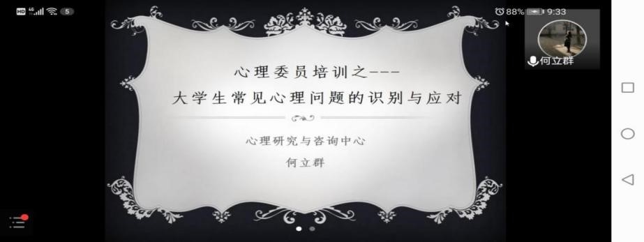 目前,2021级本科新生心理委员培训于11月6-7日两天,通过线上培训方式圆满完成。
