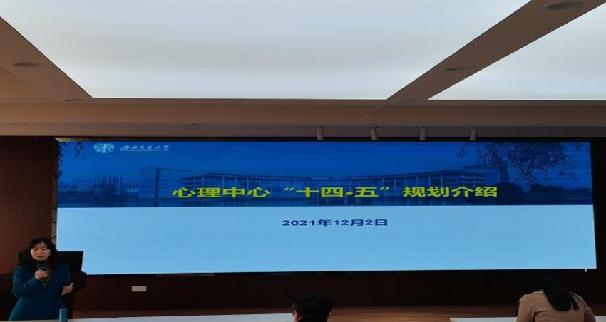 “十四·五规划”报告。首先,陈华主任介绍心理中心往年的主要成就,接着指出心理中心存在的主要问题,最后提出发展规划,包括发展机遇,面临的挑战和任务规划并鼓励全体教职工同心同德,同向同行,努力实现中心的“十四·五”规划。