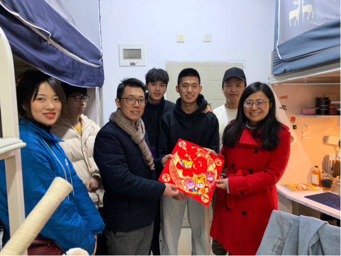 在走访送祝福的过程中,老师们拉家常、问寒暖、叙发展,关切地询问同学们的学习和生活情况,耐心地叮嘱同学们在疫情下注意防疫,在放假期间注意安全,并为同学们亲手贴福字。