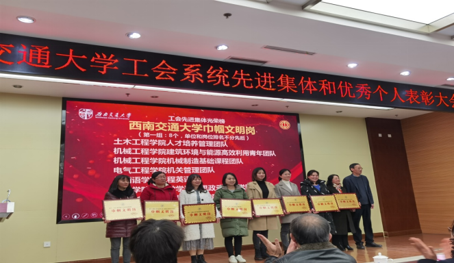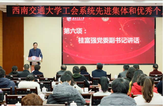 工会系统先进集体和优秀个人表彰大会在犀浦校区综合楼148会议室举行。校党委副书记桂富强出席表彰大会,工会系统受表彰先进集体及优秀个人代表,学校第七届教代会暨第二十届工代会工会干部代表,各部门工会主席、上届主席代表、工会委员代表参加大会。大会由校工会副主席李煜宏主持。校工会主席郑江作工会系统表彰工作报告,她指出校工会将构建“新时代工会工作体系”的总体目标,实施“1366”捷克论坛
