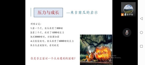 张学伟副教授首先结合马斯洛的需求层次理论讲述了疫情对同学们的学业和现实生活产生的影响。然后,张学伟副教授阐述了压力的产生机制和人们为何讨厌压力的原因。紧接着,张学伟副教授通过“压力与认知”、“压力与情绪”、“压力与行为”、“压力与成长”四个小专题让同学们更深入且全面地了解压力,并针对不同小专题的主题提出破解压力的方法和建议,在张学伟副教授的讲述中过程同学们也积极地回答老师提出的问题。
