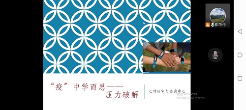 开展了2022年“3.25(善爱我)”系列心理讲座暨“抗疫·安心”行动。4月21日16点,“‘疫’中学而思——压力破解”主题讲座顺利开展。本次讲座由心理中心的张学伟副教授主讲,来自不同专业的若干交大同学参与讲座。