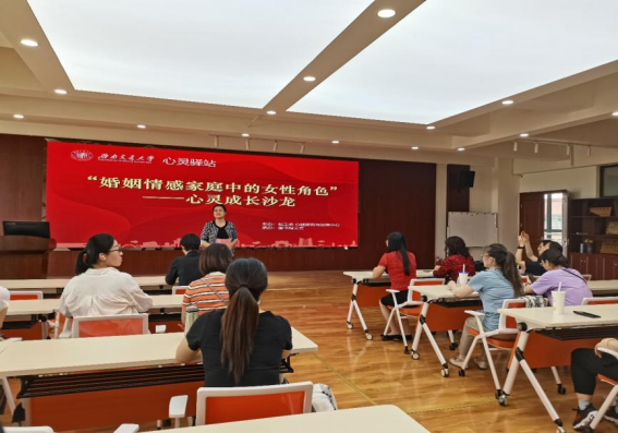 主办,图书馆工会承办的“婚姻情感家庭中的女性角色”——心灵成长沙龙活动在X5501进行。本次活动由心理中心何立群副教授主讲,校工会主席郑江、捷克论坛