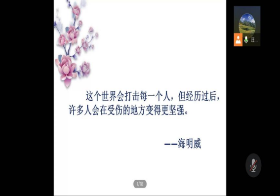 讲座汪小容老师向我们分享了海明威的名言“这个世界会打击每一个人,但经历过许多人会在受伤的地方变得更坚强她向大家描述了在疫情中可能出现的各种不良情绪同时展示了健康情绪的标准