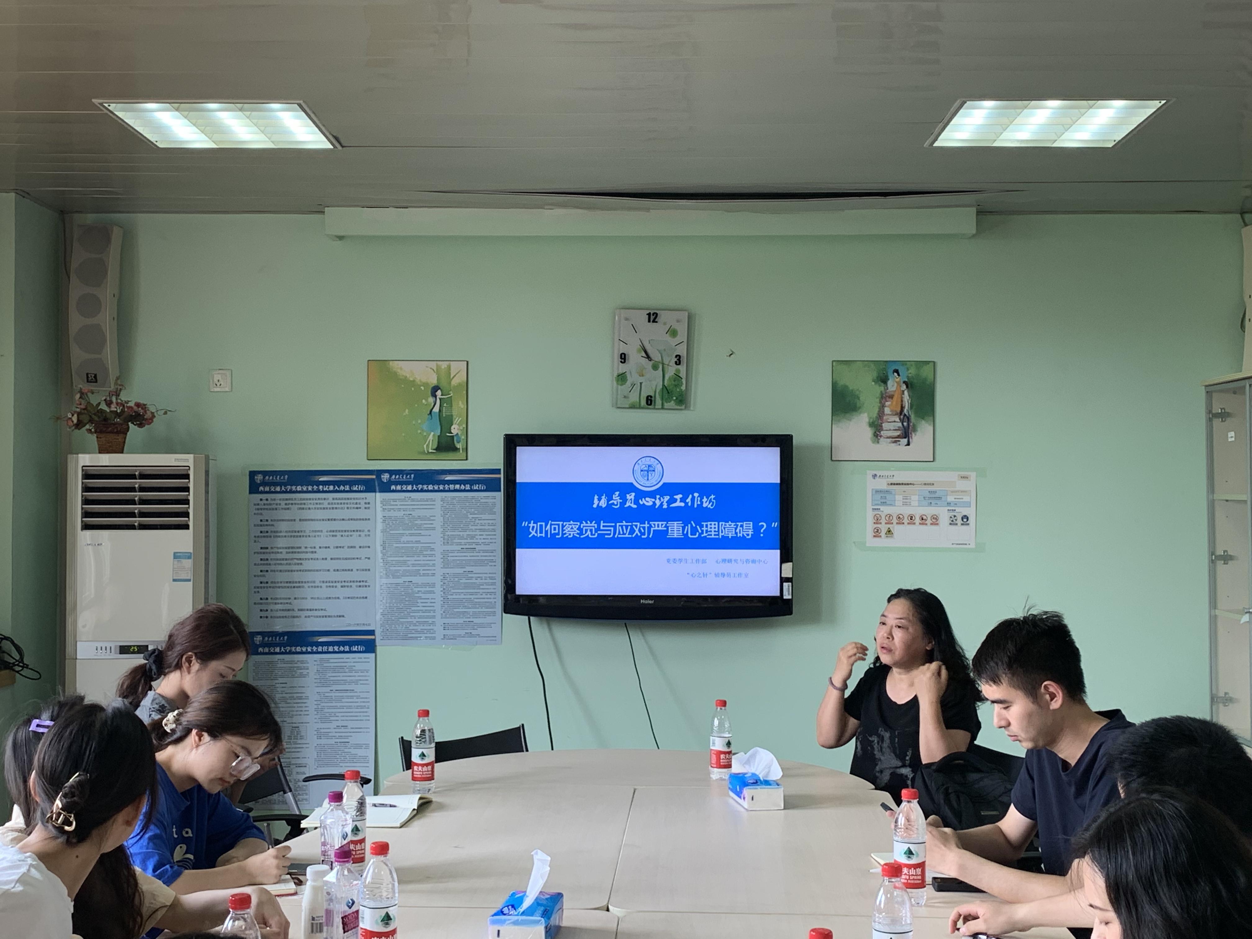 在《如何觉察与应对严重心理障碍?》专题中,张学伟副教授结合专业知识,为辅导员老师们讲解工作中应通过哪些信息和学生行为表现快速察觉学生心理障碍并提前做出应对策略。