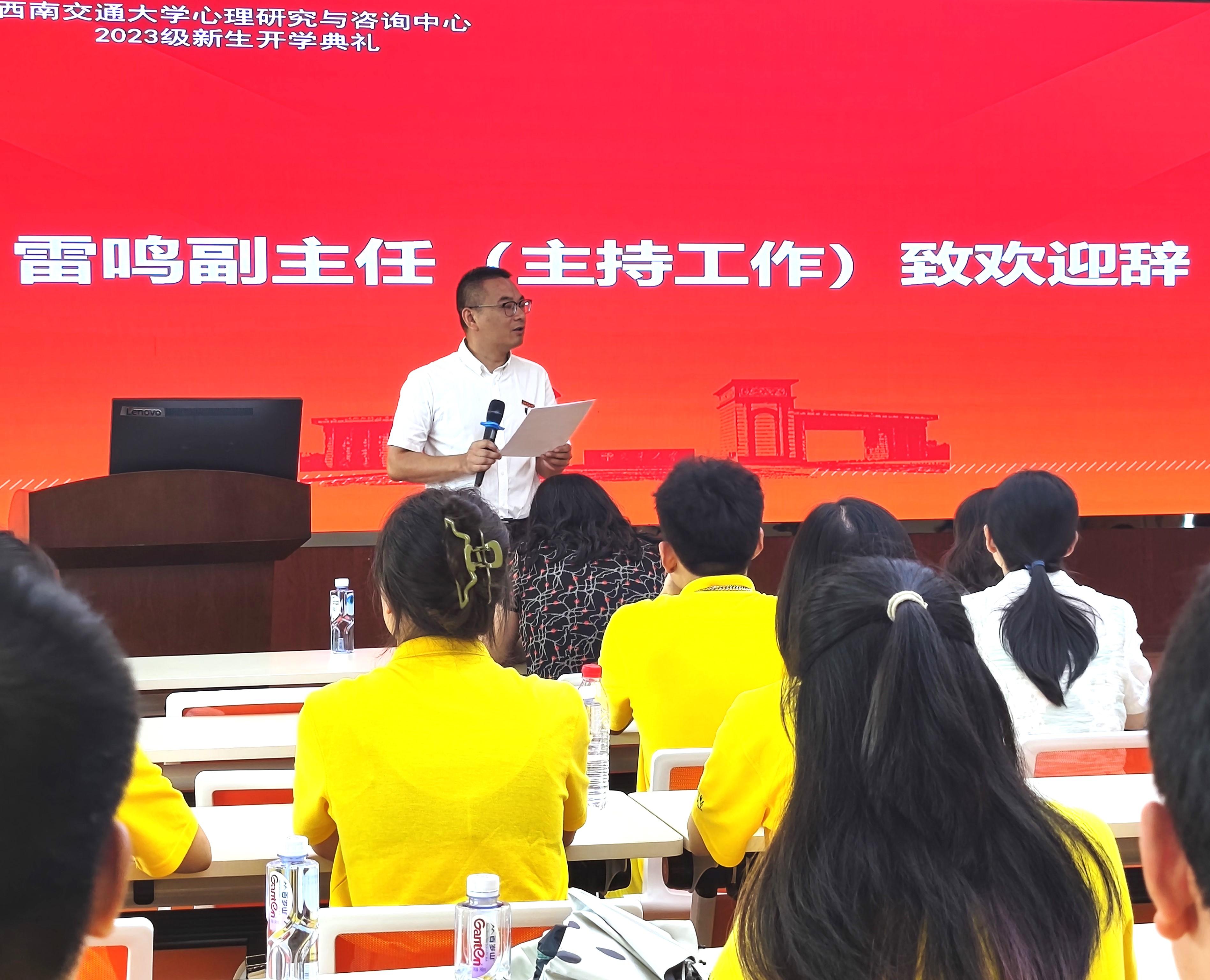 2023级本研新生开学典礼在X5501举行。中心全体领导班子、党委委员、硕士生导师、教师代表和2023级本研全体新生参加典礼。心理中心党委副书记柯小君主持典礼。