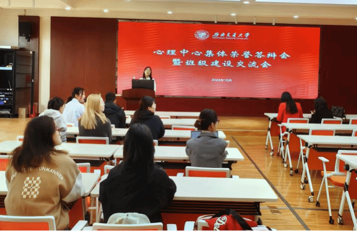 时光荏苒,新学期已经过去了将近两个月。为了进一步提升同学们的班级荣誉感和班级建设能力,心理中心于10月19日14:00在X5501举行了本科集体荣誉答辩会暨班级建设交流会。本次活动由李艳老师主持,党委书记刘咏梅、党委副书记柯小君、陈华老师、樊菊老师出席,本科各班班委和学生工作骨干参与。