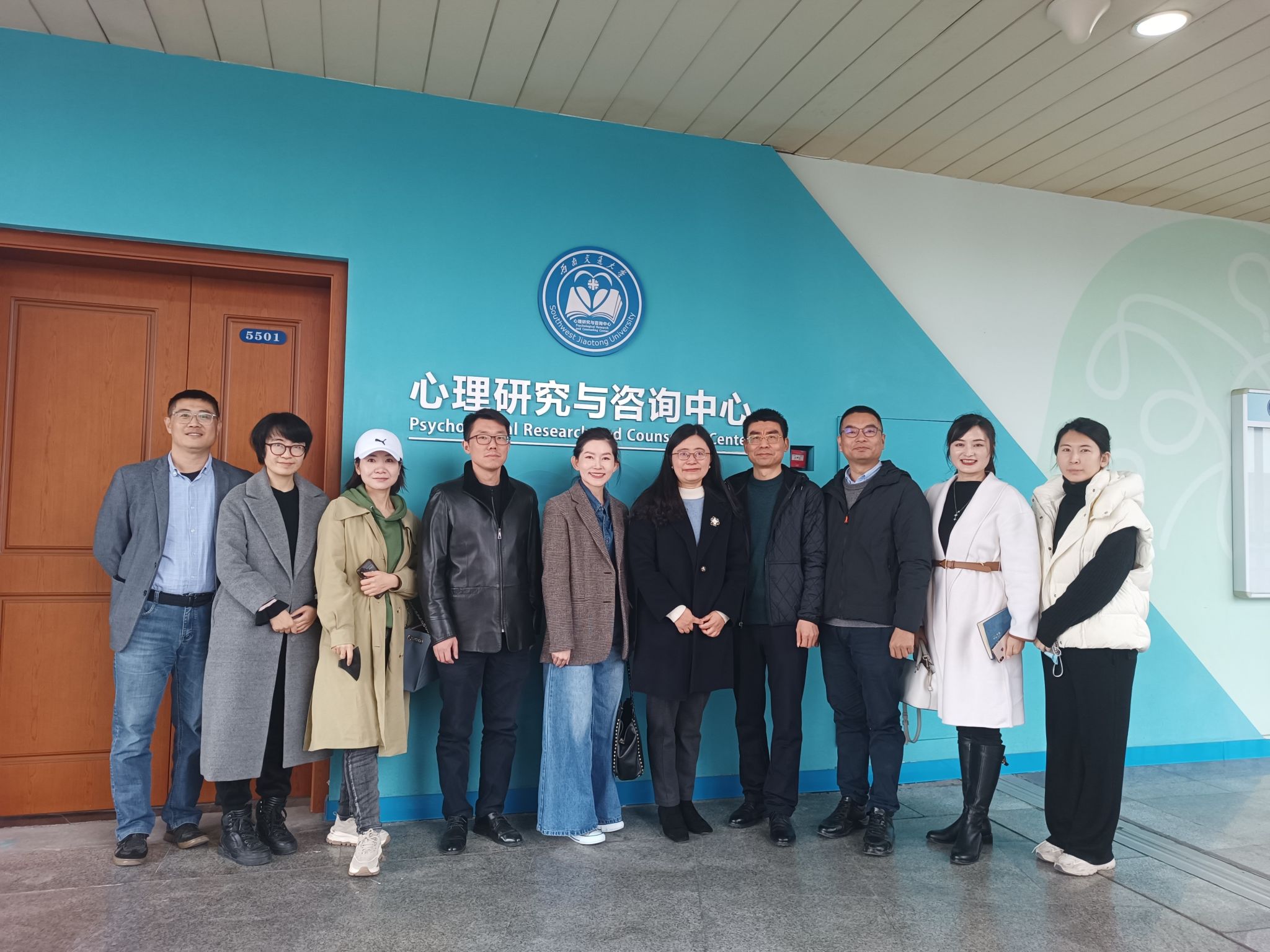 2023年11月24日上午,西华大学大健康管理学院党政领导一行到中心调研交流。中心副主任(主持工作)雷鸣、党委副书记柯小君、咨询咨询室主任杨兴鹏、综合办公室主任陈晨、本科教研室副主任冉俐雯参加座谈会。