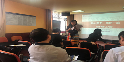 9月17日下午14:00,中心召开2020-2021学年第一次全体教职工大会,刘咏梅书记专题传达了学校中层干部会上杨丹校长和王顺洪书记的讲话,并对会议的主要精神、学校下半年的重点任务以及面临的机遇与挑战做了详细的解读。今年是特殊的一年,对中心也是关键的一年,新学期,中心面临的任务很艰巨,中心要大力推进学科建设、专业建设,汇聚全体的智慧和力量,推进“双万计划”,做好中心“十四五“规划。刘咏梅书记强调,中心教师要做好表率,要有强烈的责任感、紧迫感,希望老师们能够以激昂的斗志,迎接新的学期。