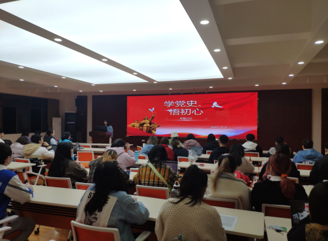 赓续百年初心,一路砥砺前行。为深入贯彻习近平总书记“学史明理、学史增信、学史崇德、学史力行”精神,传承红色基因,坚定理想信念,心理中心于11月3日19:00在5501对党员发展对象开展了以“学党史、新中国史、改革开放史、社会主义发展史,悟初心”为主题的专题学习讨论会。本次活动由心理中心研究生赵海琳同学主持,心理中心全体发展对象参加学习。