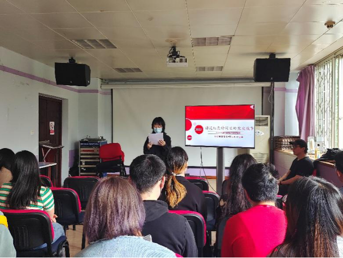 活动中,每位发展对象依次朗诵了自己喜爱的红色诗词,向大家讲述了诗词创作的背景,分享其中感人的党史故事。从五四运动到长征,有格律诗、有词、有现代诗,同学们的分享都深刻地体现了革命先烈们舍生取义的崇高气节、报国为民的炙热情怀,中国共产党人对理想信念的执着追求、对党和人民忠诚的赤子之心。