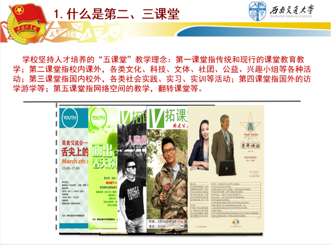 之后樊老师还介绍了学校第二三课堂制度、毕业学时要求、选课方式等。第二三课堂旨在引导和组织学生开展各种有意义的课外活动。这个课堂的活动包括课余理论学习、文体活动、科技创新、社会实践等。所以第二课堂与第一课堂相配合,使第一课堂的教学在第二课堂的活动中得到有效的延伸、互补,以育人为宗旨,以培养学生的基本技能和提高学生的综合素质为重点,构成素质教育完整的教学体系。对于塑造学生健全的人格、培养学生的综合素质、形成健康向上的精神风貌具有重要作用。