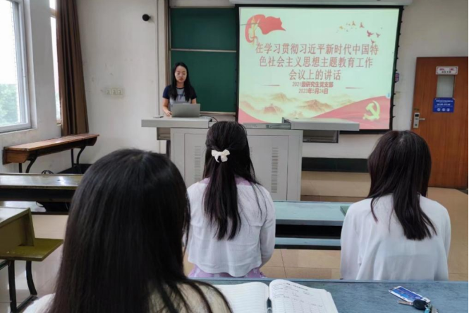 最后,2021级研究生党支部全体党员观看了习近平总书记《在学习贯彻习近平新时代中国特色社会主义思想主题教育工作会议上的讲话》的相关视频,并在观看后交流观后感。