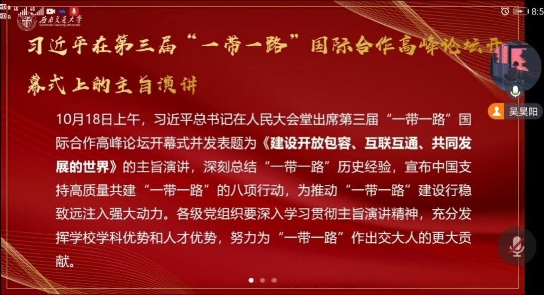 第三部分学习了习近平在第三届“一带一路”国际合作高峰论坛开幕式的主题演讲。宣布中国支持高质量共建“一带一路”的八项行动。