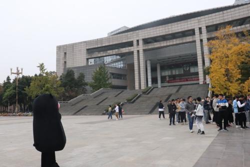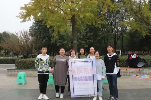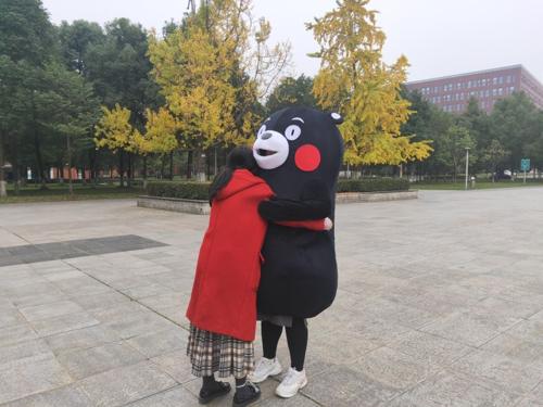 “爱的抱抱”是由心理青协成员阎思睿穿着熊本熊玩偶服来和参与者们拥抱,通过简单的拥抱向彼此传递温暖。
