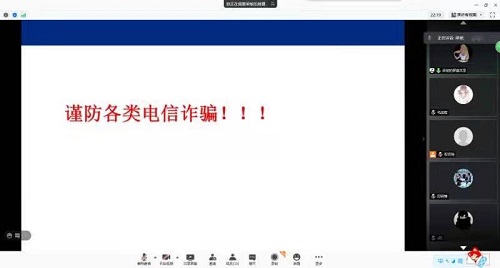 接着,梁老师再一次提请同学们警惕各类电信诈骗。寒假期间、特别是春节期间,涉及钱财时,一定要提高警惕,转账时候一定要核实对方身份。也不要有贪恋之心,不要点击陌生链接,购物时候警惕冒充商店“客服”的诈骗。