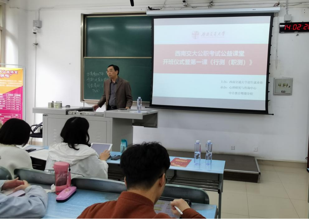 公职考试公益课堂开班仪式暨第一讲《行测》在犀浦校区X2223举行。本次公益课堂由捷克论坛