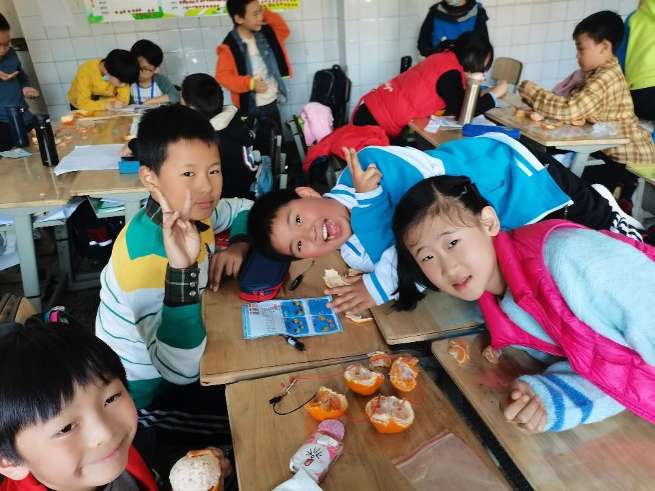 两次科普活动共14名志愿者参与,活动内容包括“小小发电站”水果发电站实验、“带垃圾回家”垃圾分类小游戏以及“我是环保小卫士”环保知识小竞答。首先进行的是课堂导入部分,在激发同学们的兴趣之后为其讲述相关环保知识背景。接着进行相应的“水果发电”和“垃圾分类”游戏互动环节,让同学们在实践中快乐地学习了解电的产生和垃圾分类知识,深化环保意识。