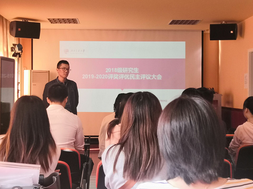 2018级研究生于X5322召开了研究生荣誉称号民主评议大会。中心领导柯小君副书记、学生工作组辅导员陈瑶参加此次大会。