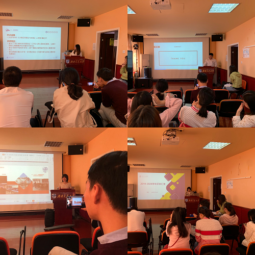 会议第三项,竞选同学通过PPT、自我陈述进行多方面的展示。之后每位同学进行不记名投票。最终,杨睿同学获“优秀研究生标兵”称号,龙海霞同学获“优秀研究生”称号,罗瑶同学获“明诚奖”称号。