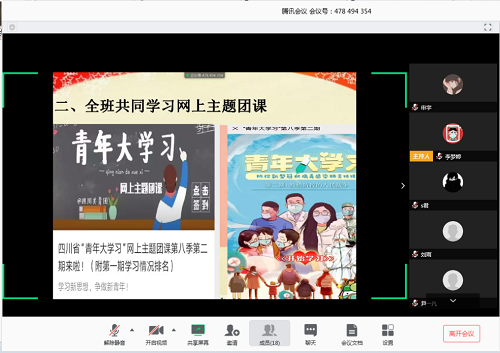 除此之外,各团支部积极响应上级团委的号召,引导同学们共克时艰、用心抗疫,还开展了特色不一的活动。本科2018级团支部全体同学共同阅读了《习近平:不获全胜决不轻言成功》、《众志成城、守望相助,坚决打赢疫情防控阻击战!》等文章,领会党与全国人民众志成城,坚决打赢疫情防控战的信心与信念。研究生2019级团支部开展“学习新思想,争做新青年”主题团课,并在团支书的带领下一起参与了“青年大学习”第二课的学习。