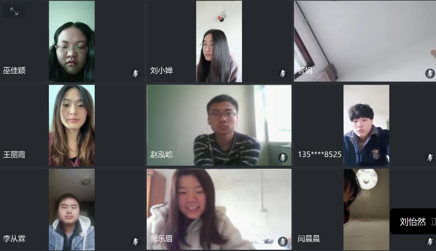 2020年3月30日上午,由于疫情影响,开学日期延后,本次班会采用钉钉视频会议的方式开展,由心理中心2019级本科生2班班长刘怡然主持。此次班会意在总结线上教学以来同学们得到的学习经验,改进自己的学习态度及方法,通知读书分享会的相关事宜,督促同学们进行青年大学习并讨论团员评议的具体事项。