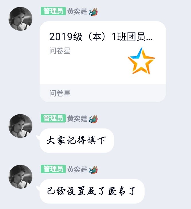 在下一项事宜中,各班班委征集同学意见,采用匿名投票,进行优秀团员评议。最后,19本科生辅导员王丽霞老师总结了此次班会活动,提醒同学们珍惜时间,上好网课,不要在这个特殊时期落下课业,同时,关心疫情期间同学们身体的健康,提醒大家疫情防控不放松,少出门,不聚集,并期待开学与大家见面的一天尽快到来。