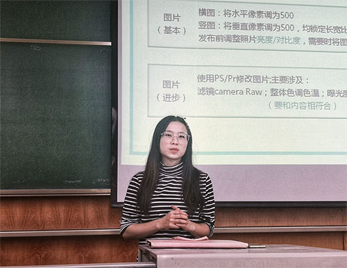 2019年9月26日19:30 ,心传媒工作室主任赵山霞、心传媒文案部副部长吴一琳在X4357为分别为同学们公众号推文写作技巧、新闻写作技巧两方面的培训。参与人员包括中心所属各学生社团宣传部成员及各班级宣传委员。