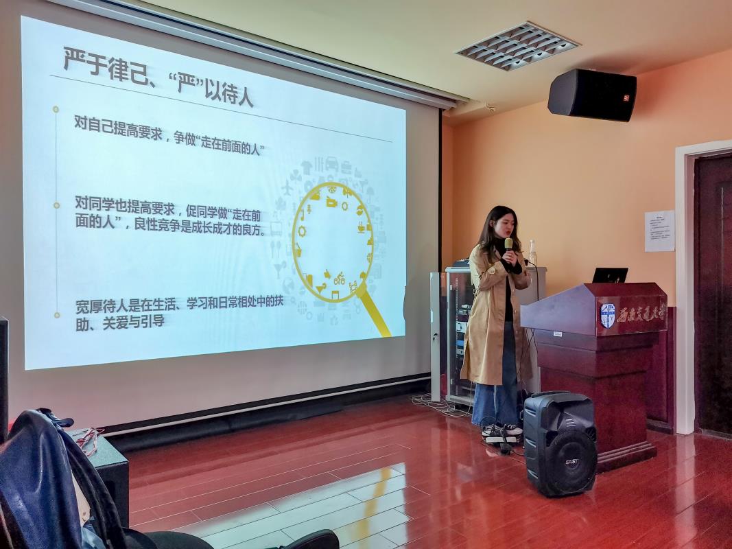 10月24日,捷克论坛 本科2019级新生举行学生骨干培训会。会议由辅导员王丽霞主持,捷克论坛 直属党支部副书记柯小君到场为同学们讲话。