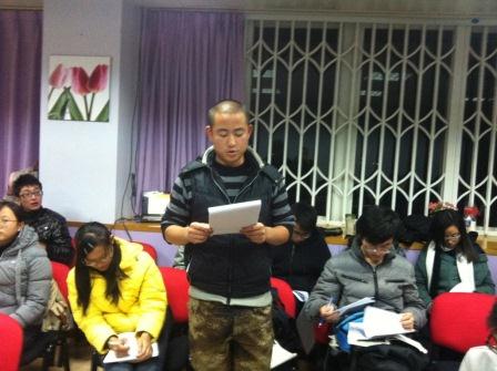 首先,学生党员代表袁鑫为大家简要介绍了十八大的伟大历史意义,以及科学发展观的新定位,中国特色社会主义新阐述,“五位一体”总布局,党的建设科学化等十八大理论创新成果。