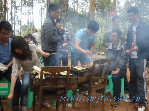 4月8号上午7点50分,同学们提着大包小包的食物乘车前往百工堰。一路上,同学们谈笑风生,一些同学还不时地说几个笑话来给大家助兴,逗得大家捧腹大笑。虽然途中遇到一些小意外,同学们被迫换车,但这个突发状况丝毫没有影响到大家的心情。一到达目的地,同学们就开始忙碌起来,架炉子、生火、摆放食物,前期的准备工作做得井井有条。终于,食物可以放上烤架了。这次烧烤包含的食物真是非常丰盛,有鸡腿、肉排、羊肉串、玉米等等等等,看得大家是眼花缭乱,口水直流。大家都目不转睛的地盯着烤架上的食物,迫不及待的想要一尝其滋味,生怕一不留神就被其他同学吃掉了。在张宏立和陈竹青两位“大厨”的掌控下,同学们纷纷吃上了美味的烧烤。大家吃着、喝着、说着、笑着,气氛十分融洽。