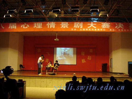 决赛排练现场,令人惊奇的是峨眉校区心学剧组的剧本和我们一样,不过我们的队员都对此表示毫无压力,这是一份自信,对自己努力付出的自信。晚上比赛开始了,虽然峨眉校区的同学在我们之前有了出色的表演,虽然初赛时有比我们强很多的团队,虽然我们有稍许的紧张,但是更多的是我们的自信。终究我们不负众望,更重要的是没有辜负之前的辛苦和努力取得了第二名——最具潜力奖。