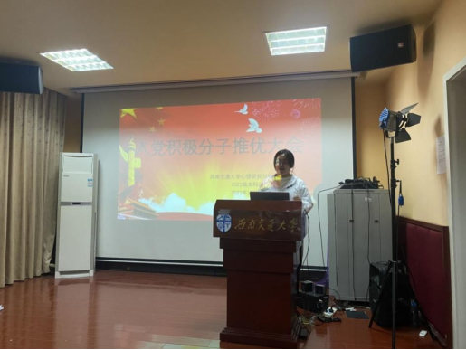 主持本次活动的是2021级心理1班团支部书记姜春梅,她首先介绍了本次推优大会的推荐对象以及基本条件。让大家了解到本次推优的对象以及需要满足的条件,加深同学们对入党流程的了解。