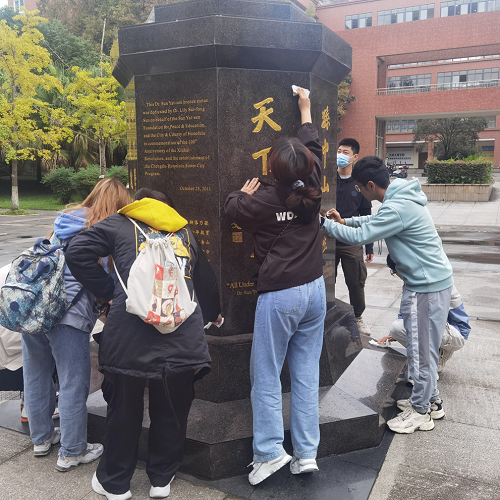 心理研究与咨询中心青年志愿者协会于10月30日开展了雕塑清洁志愿活动,对四号教学楼与五号教学楼之间的严恺先生纪念像和二号教学楼与五号教学楼之间的孙中山先生纪念像进行了清洁。
