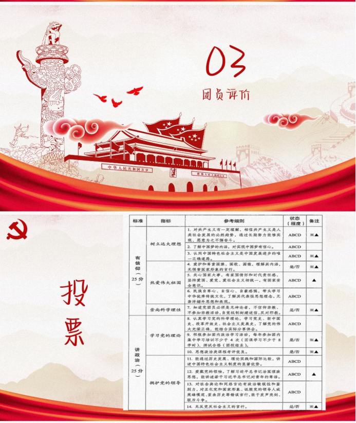 最后是投票环节,各位同学通过对各位团员的发言的理解与评价,给同学们的发言做出了自己的评判,选举出了本班的优秀团员。会议于晚上7点圆满结束。