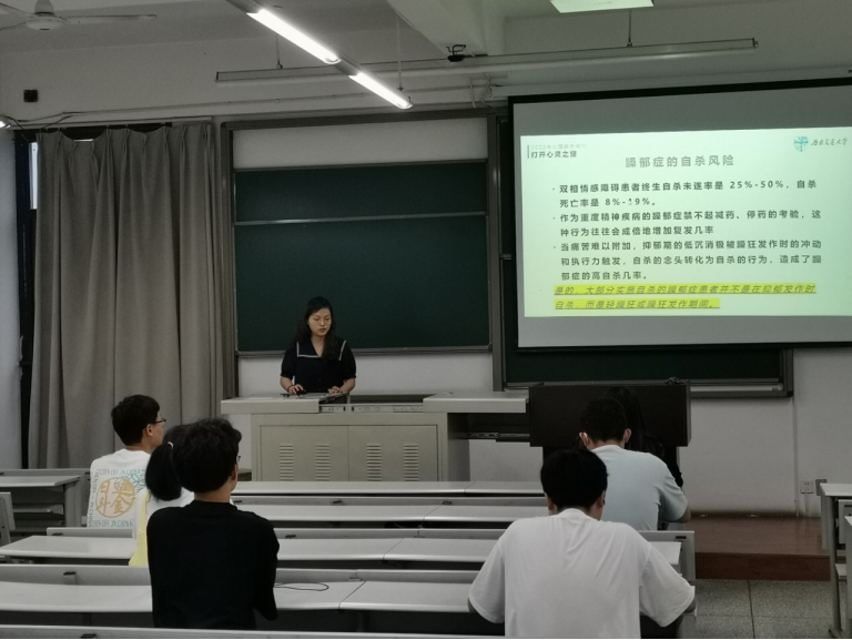 在活动过程中,主讲人们向同学们科普了大学生常见的多种心理健康问题,并且提出了非常现实可行的建议,为同学们充分解答了各种疑惑。此外,讲座过程中也介绍心理中心的基本情况,以及中心开展的活动,并分享了公众号和相关信息。同学们的反应都非常积极,表示在这个过程中学到了很多有用的心理学干货。