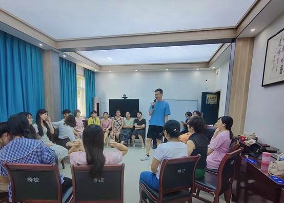 此次活动是在唐静老师带领下开展的,由侯牧天、黄俊枫、刘瑷三名科普基地成员组成志愿者队伍。首先,唐静老师做了“善爱我”主题的讲座,通过冥想练习、朗诵诗歌等形式,为一线教师们提供了应对工作与生活中烦恼和压力的“心理指南”。在互动环节教师们踊跃发言,气氛热烈。