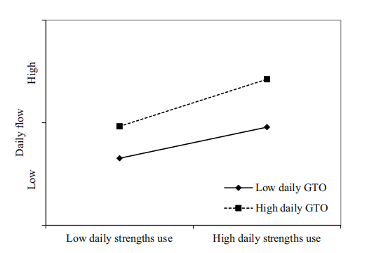 H3:每日对组织的感恩(GTO)调节了每日优势使用与日常Flow之间的关系,即当日常 GTO 较高时,这种关系更强。
