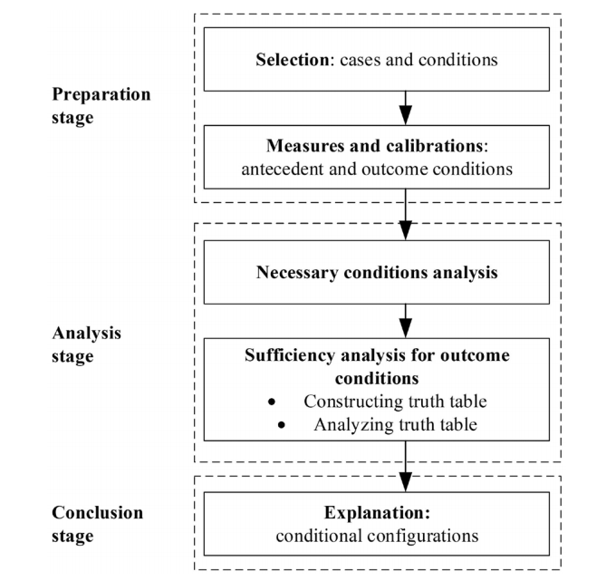 (3)数据分析:研究采用模糊集定性比较分析(fsQCA)方法。首先,对研究变量进行信度检验;其次,通过直接校准法,校准研究变量;再次,分析单个条件对结果的必要性;最后,分析不同条件组态对结果的充分性。